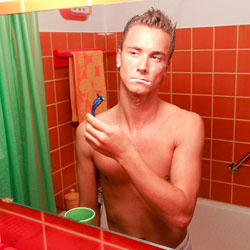 soms scheert hij nat ('s ochtends), 10 minuten;