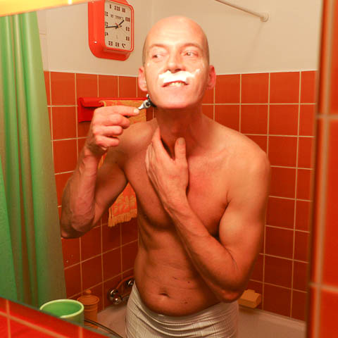 Geert scheert nat, elke dag ('s ochtends), 3 minuten;