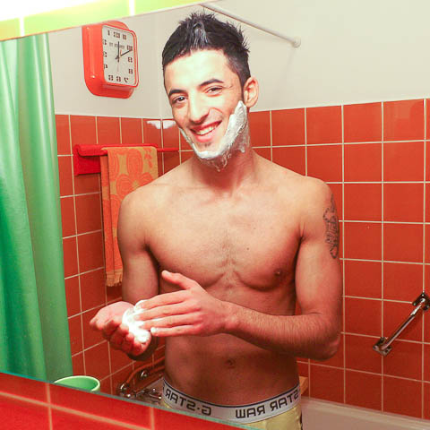 scheert nat, drie keer per week ('s middags of 's avonds) 5 minuten;