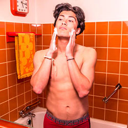 Hij gebruikt gewoonlijk scheerschuim, een wegwerpscheermesje en aftershavebalsem,